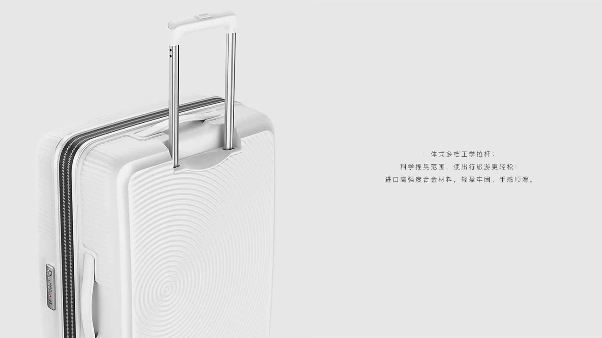 美旅AO8拉桿箱是為旅行者設計的產(chǎn)品。她造型柔和、簡潔,表面的立體漩渦設計時尚個性。產(chǎn)品采用PP材料注塑一體成型,抗壓且耐刮花。該產(chǎn)品獲得了2017年紅點設計大獎。