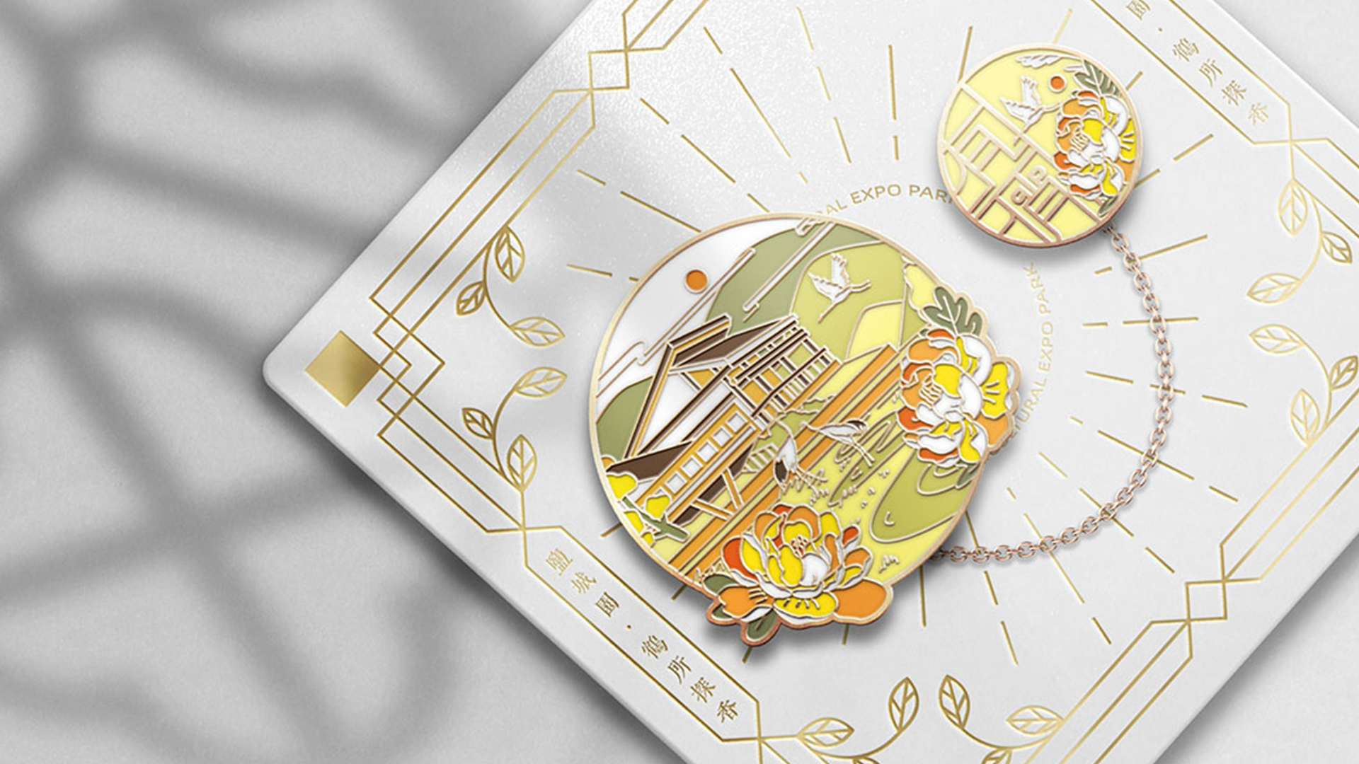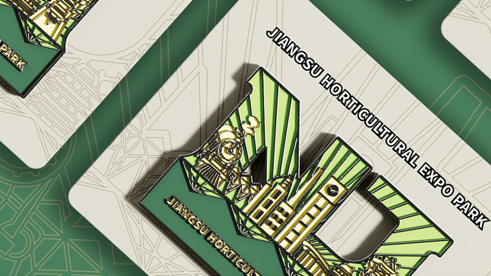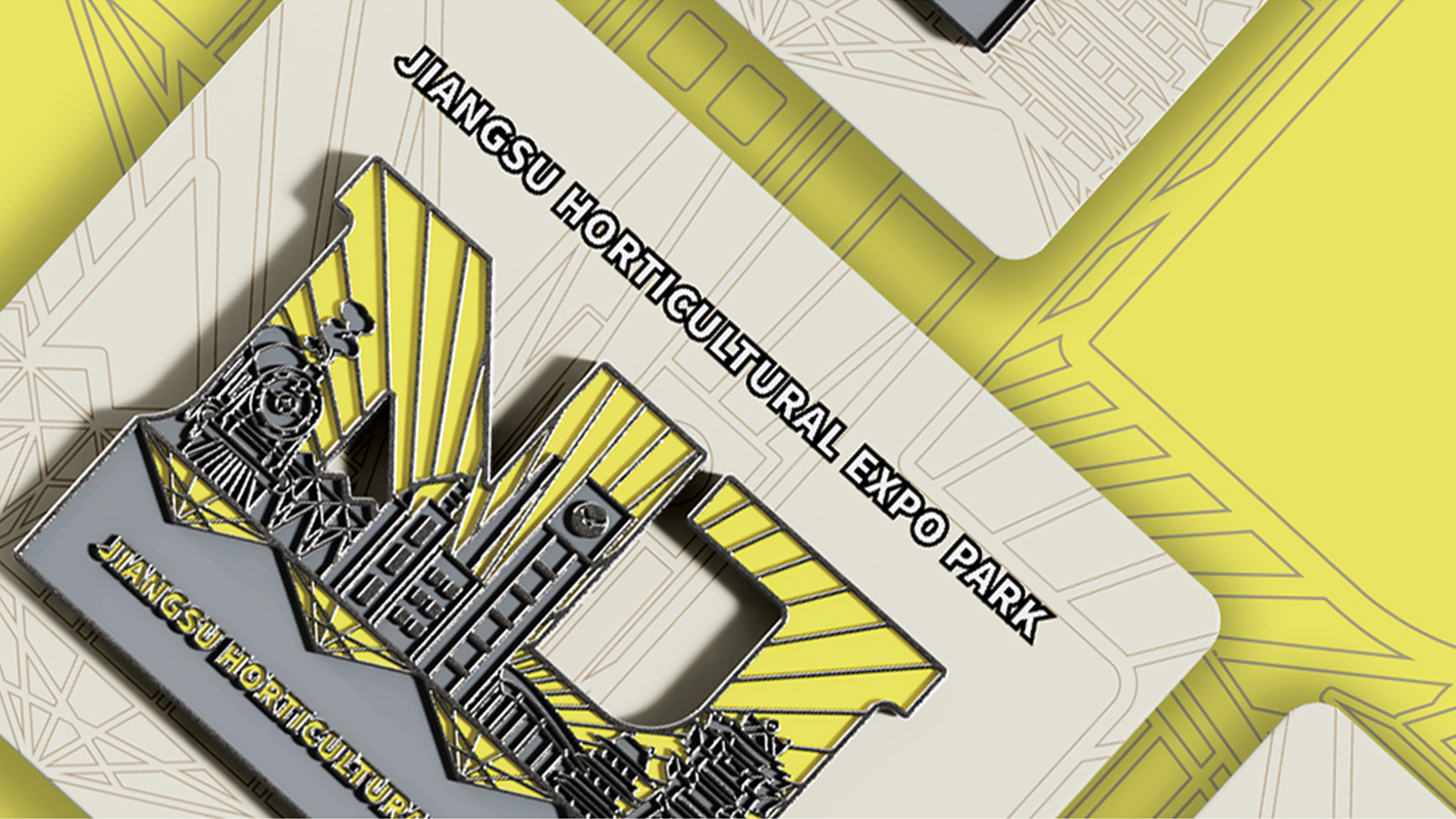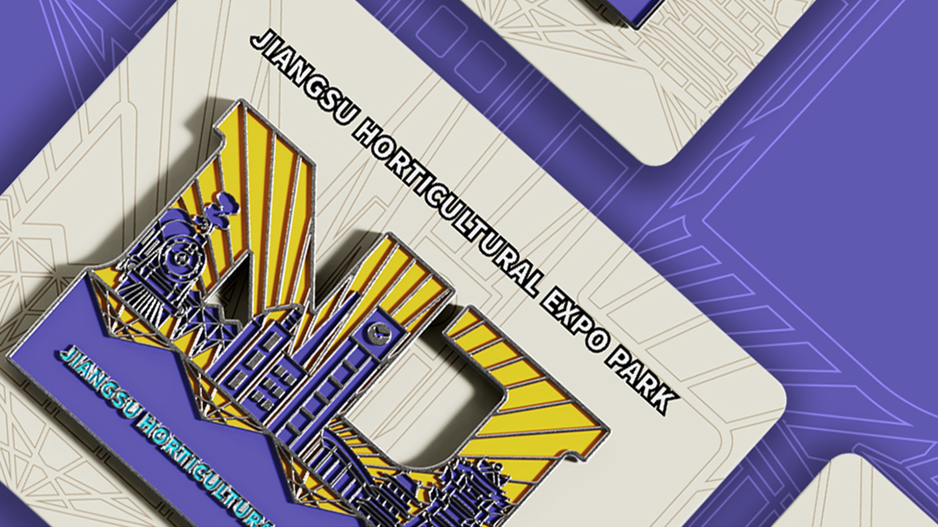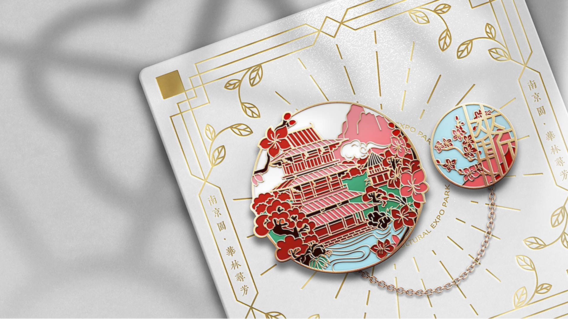 蘇韻薈谷·文創(chuàng)徽章:蘇韻薈谷徽章系列以江蘇省十三市經(jīng)典園林建筑為靈感,分別融入各地代表美好寓意的特色方言,從傳統(tǒng)園林窗花切入,運(yùn)用視覺(jué)立體化手法,形成具有地方特色的徽章視覺(jué)體系。