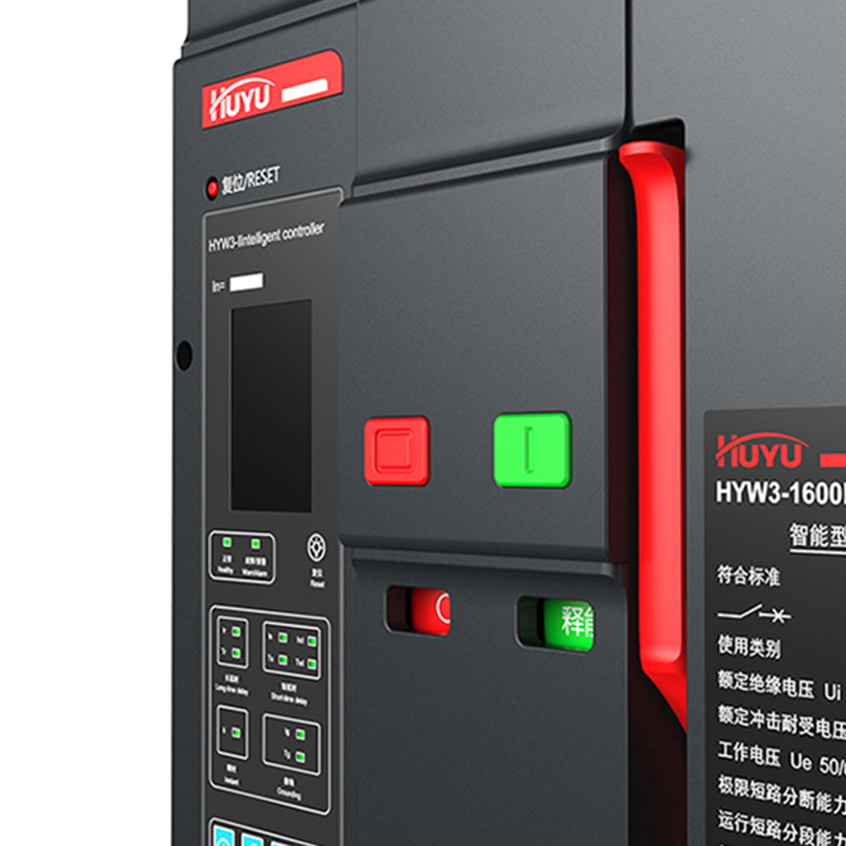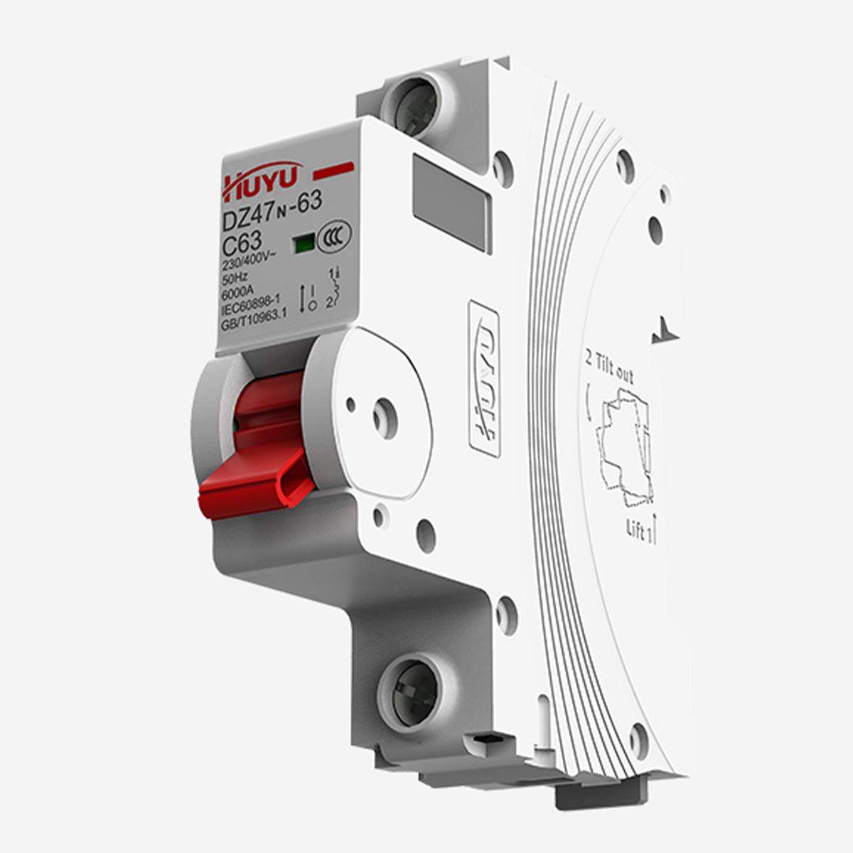 小型斷路器運用微曲面和圓角,融合環(huán)字logo中U和H元素, 形成高山飛瀑的造型特征,同時在立體呈現(xiàn)效果上展現(xiàn)出雙手呵護、安全可靠的設計理念。在側(cè)面運用日出東方曲線做為紋理,方 面起到散熱功能,同時增強產(chǎn)品的質(zhì)感,提升用戶在安裝過程中的觸感。