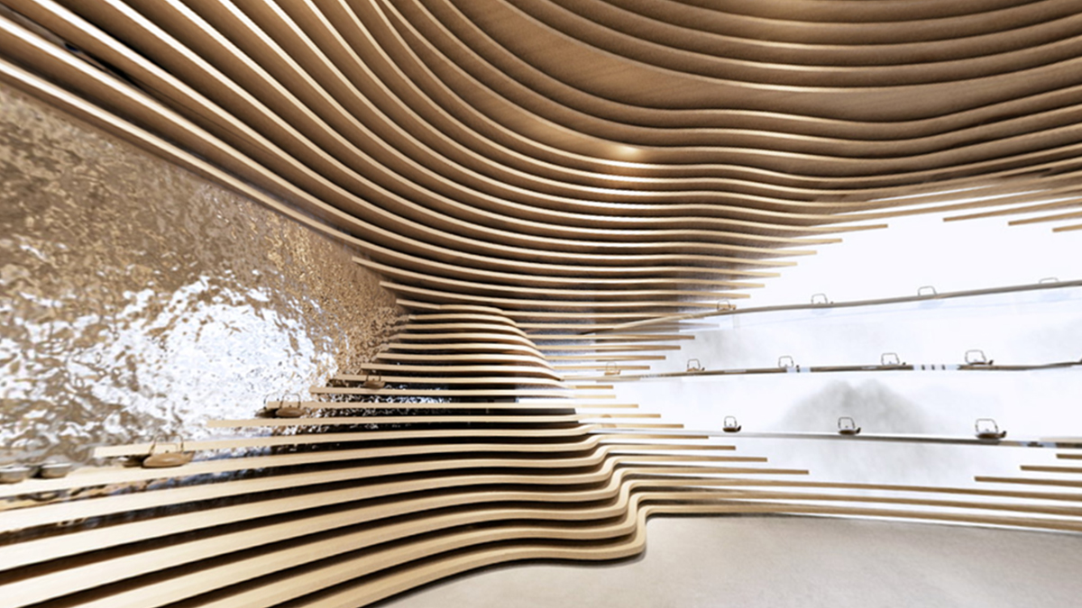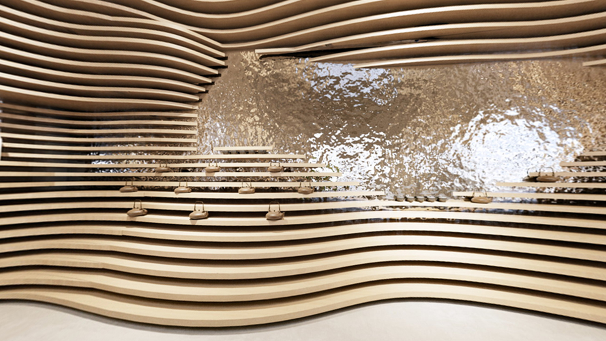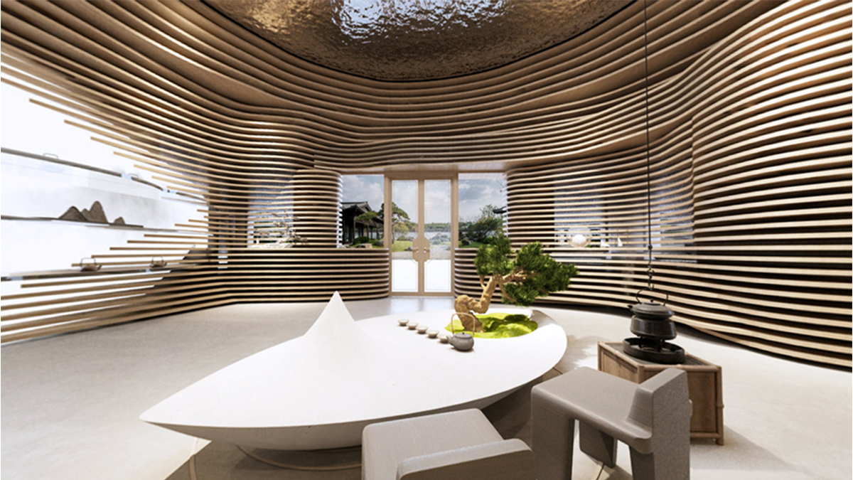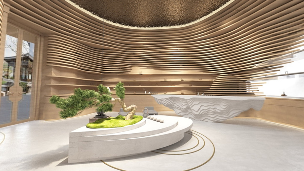 整體空間的靈感來(lái)自于自然地形——梯田, 所塑造的自然成型的層次。決定了人與動(dòng)物行走,相遇,交談,互動(dòng)的生態(tài)。茶葉本身也是從這個(gè)大自然采集而來(lái),整體思路是希望空間能夠跳脫常規(guī)四四方方的死板規(guī)范,因?yàn)槲覀兊氖澜缡橇鲃?dòng),曲面,不定性的。回歸自然,我們本該將自然界元素融會(huì)貫通,改變我們體驗(yàn)商業(yè)跟人互動(dòng)的形態(tài),才能從底層反應(yīng)茶這件事請(qǐng)的本質(zhì)。