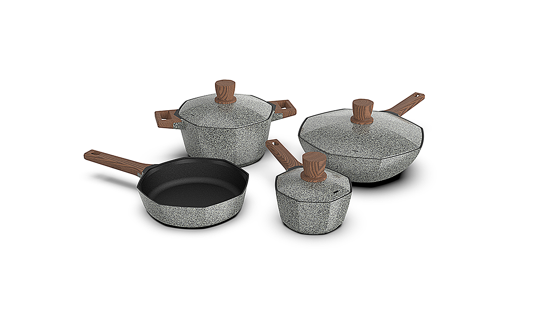 卡特馬克的工程師嘔心瀝血的186次鍋體修改,傾注了多少個日夜的凝望,不單在八邊形里達到完美的受熱和更快的聚熱,更是開辟了鍋具領域異形鍋的新技術。再搭配上新一代高度耐磨特性的不粘涂層,設計師與工程師的完美結合,美學與技術的相互融合。